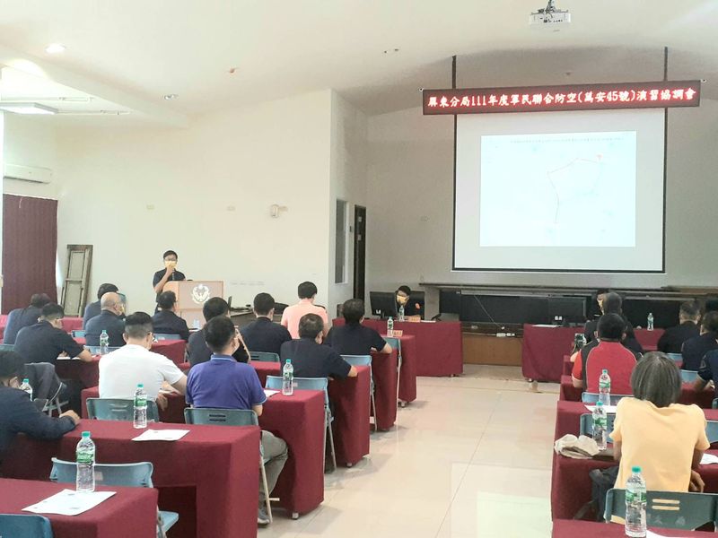 屏東警分局為求演習順利,並強化宣導成效,於7月18日下午,特別邀集各機關、學校及商家等代表,召開演習協調會。將演習當日相關注意事項及配合辦理工作,進行詳細說明及溝通,強調演習期間將嚴格執行道路人車管制,行駛之車輛務必停放道路兩側,人員同步採取疏散隱蔽。