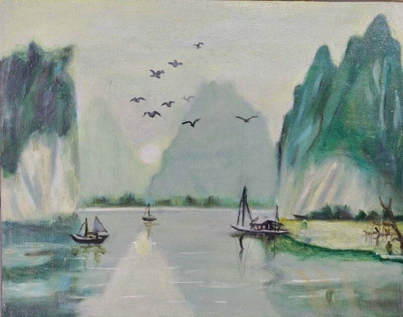圖說 : 作品名稱 /「水月通禪意 山雲寄野情」(藝術家 胡嘉蕙 的作品/高師大美術研究所畢業)