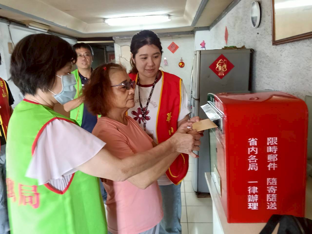 今日活動中,蔡碧惠副科長 特別準備一座象徵思念的「郵筒」,陪伴張阿嬤將對兒子的思念化為文字,親手投遞,象徵寄送至天際,為她帶來心靈慰藉。