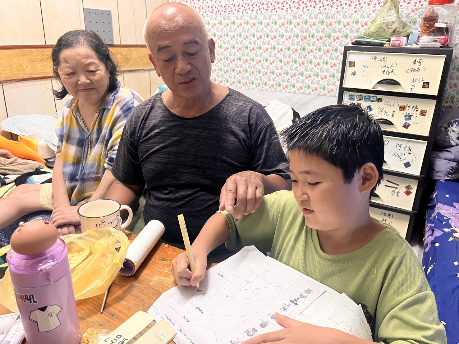 圖說 : 蔡先生與劉女士伉儷陪伴孩子完成作業