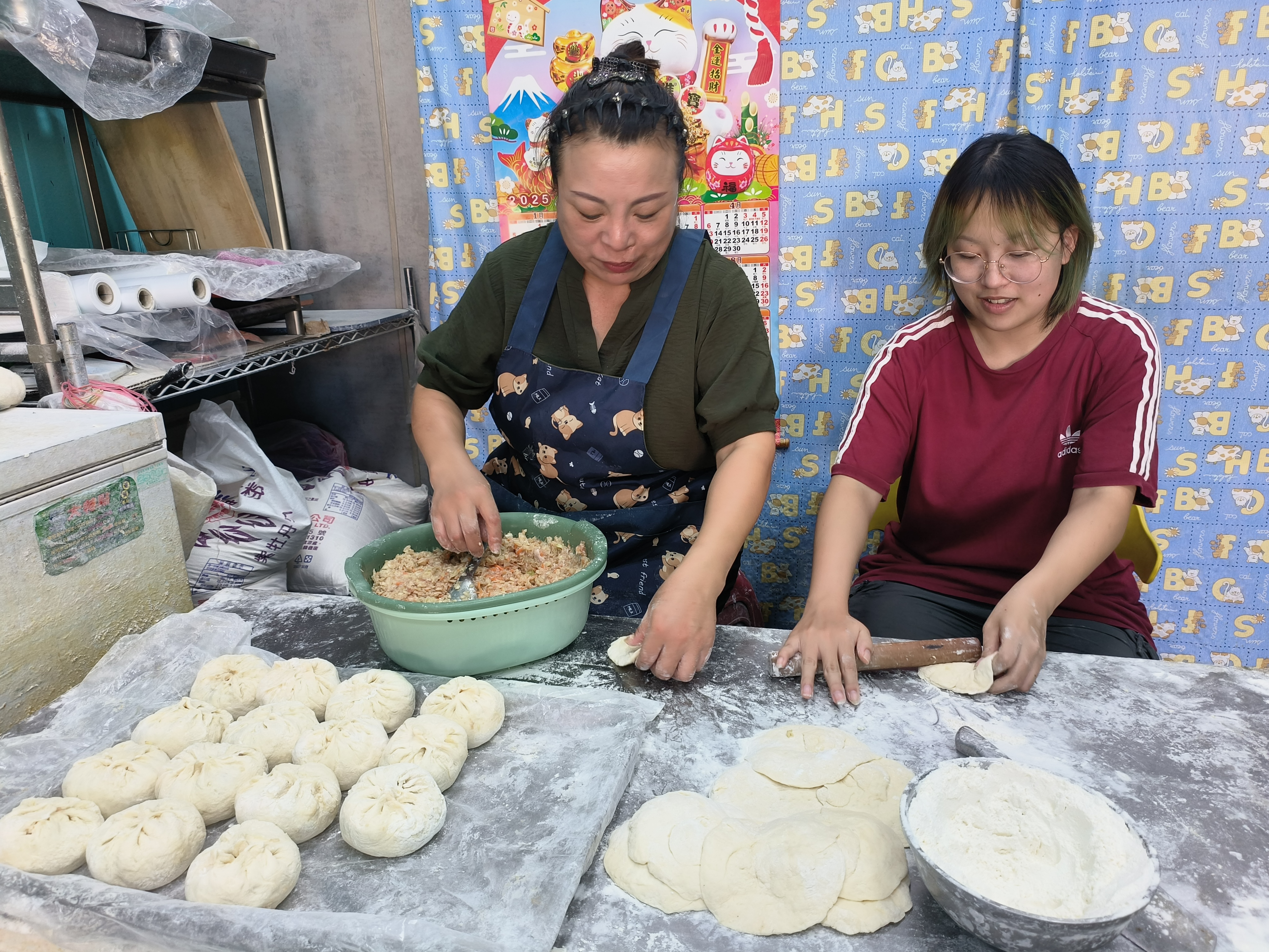 圖說 : 高瑩女士經營中式早餐-與小女兒一起包煎包