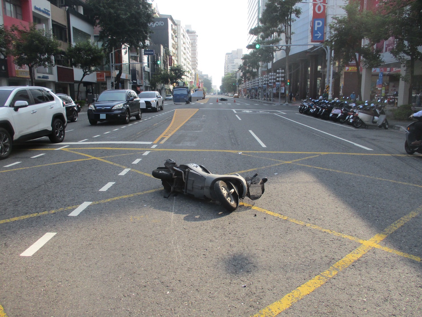 經初步調查,20歲郭姓女子(酒測值0)騎乘普通重型機車沿三多三路西往東行駛,行經事故地點時,與同向左轉彎之80歲傅姓男子(酒測值0)所騎乘之普通重機車發生擦撞。兩人均因摔車受傷,身上多處擦挫傷,但意識清楚、無生命危險。